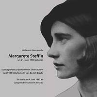 Die Schriftstellerin, Schauspielerin und Mitarbeiterin von Bertolt Brecht, Margarete Steffin, wurde am 21. MĂ€rz 1908 in Rummelsburg geboren und verstarb am 4. Juni 1941 in Moskau. Sie war zweifellos ein groĂes dichterisches Talent, das in der Arbeiterkulturbewegung der 1920er Jahre auch zu einer schauspielerischen GröĂe heranwuchs. Berthold Brecht hat ihr Talent erkannt und gefördert. Beide verband eine intensive Beziehung, ohne Steffin wĂ€ren manche seiner StĂŒcke wohl Ă€rmer ausgefallen. Die Jahre mit ihr waren Brechts produktivste Zeit; nach ihrem Tod klagt er: âzum erstenmal seit 10 Jahren arbeite ich nichts ordentlichesâŠâ (Journal, Eintrag vom 21.4.1942, zit. in Hauck 26). In den neuneinhalb Jahren ihrer Zusammenarbeit vollendeten die beiden zehn Dramen, darunter "Galilei", "Der gute Mensch von Sezuan", "Puntila" und "Der aufhaltsame Aufstieg des Arturo Ui". Sie hat auch wesentlich beigetragen zur "Mutter Courage" und war an der Bearbeitung der Gedichtsammlungen im Exil beteiligt, etwa der "Steffinschen Sammlung" (1942), fĂŒr die sie die erste Auswahl traf.
