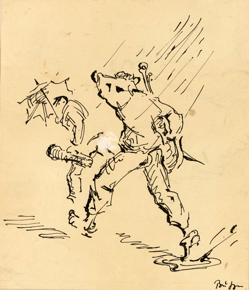 Zeichnung: Zigeuner im Regen, Ruth Baumgarte, 1942 © Kunststiftung Ruth Baumgarte