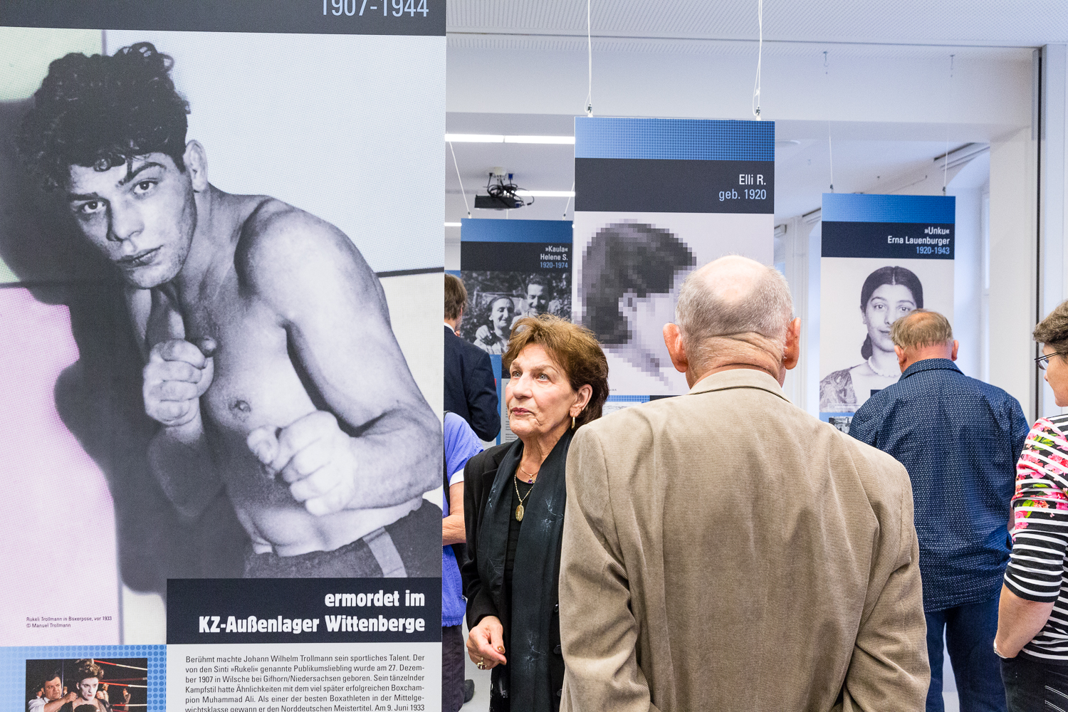 Im Ausstellungsraum Rita Vowe (Tochter von Johannes Rukeli Trollmann) und die Kuratorin Barbara Danckwortt