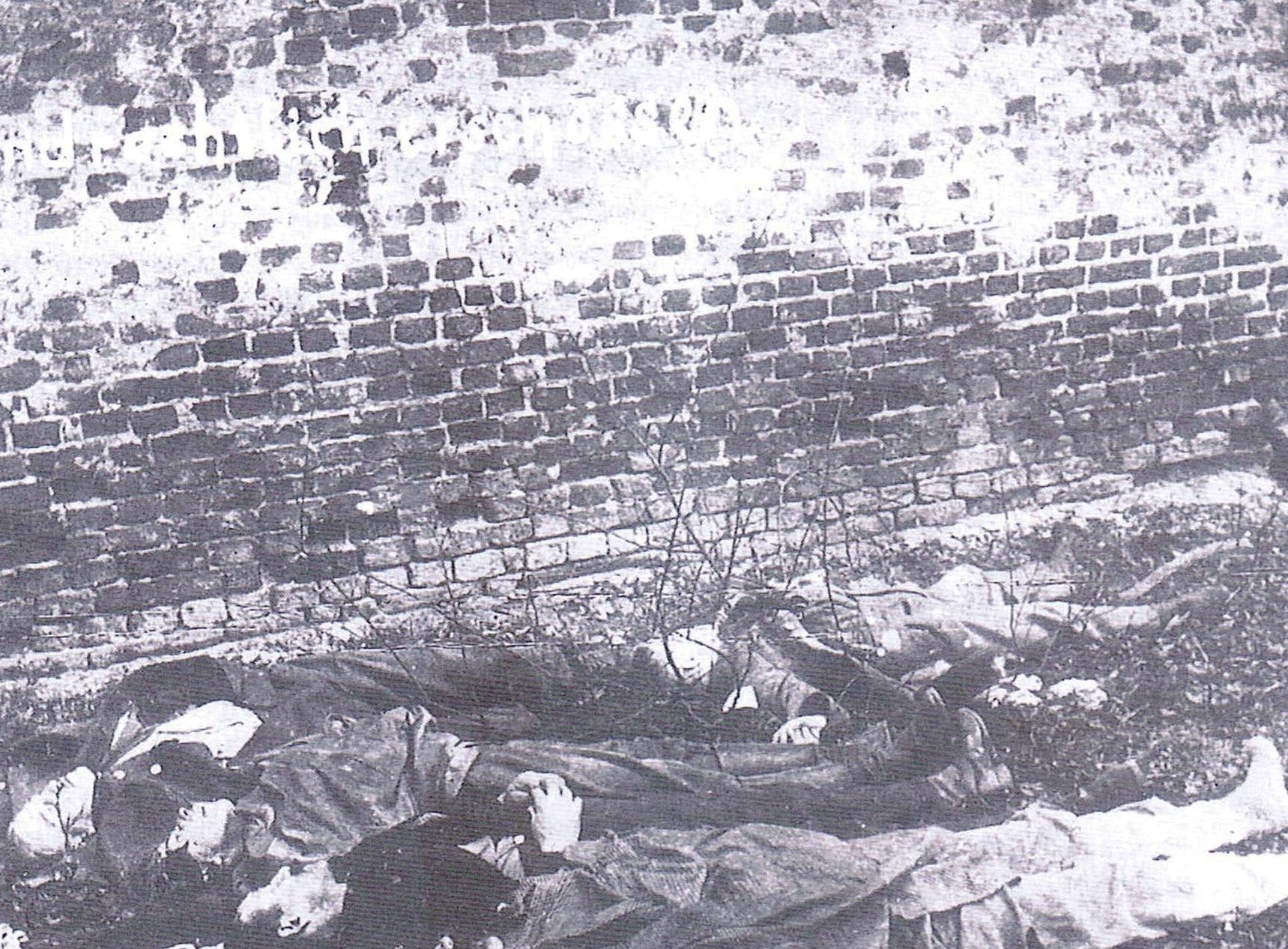 Bildquelle: Blutmauer 1919- Erschossene -Ausschnitt_Archiv MusLibg