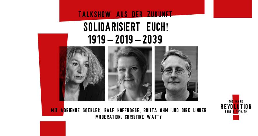 Wenn 100 Jahre nach der Einführung des Achtstundentages, die eine zentrale Errungenschaft der Revolution war, wieder gegen 60-Stundenwochen demonstriert wird, was sagt das über den Stand der Dinge? Wenn neue Studien besagen, dass die Einkommensungleichheit in Deutschland auf dem Stand von 1913 ist, was sagt uns das über die Idee gesellschaftlichen Fortschritts? Kommt der nächste Krieg oder die nächste Revolution? Welche Form der betrieblichen Mitbestimmung bräuchte es heute, um Arbeitnehmerrechte zu verteidigen? Was bedeutet der Sozialisierungsparagraph im Grundgesetz, der dem Staat theoretisch ermöglicht, Privateigentum zum Wohl der Bevölkerung zu verstaatlichen? Wie utopisch ist das bedingungslose Grundeinkommen eigentlich noch?