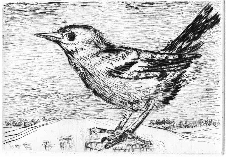 Birgit Horota-Müller, „Wintervogel“, 2012 Kaltnadel © Künstlerin