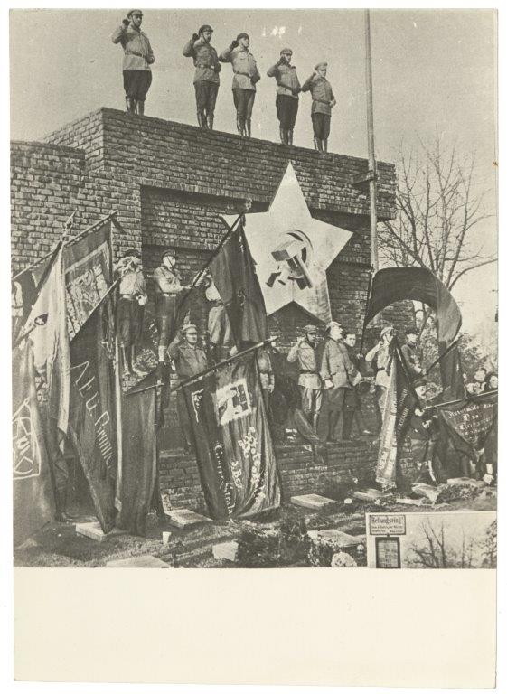 Abb.: Demonstration des Roten Frontkämpferbundes der KPD am Revolutionsdenkmal von Ludwig Mies van der Rohe (Ausschnitt), Zentralfriedhof Friedrichsfelde, Berlin, aus: Arbeiter Illustrierte Zeitung, H. 4, 1930. Mit freundlicher Genehmigung des Mies van der Rohe Hauses.