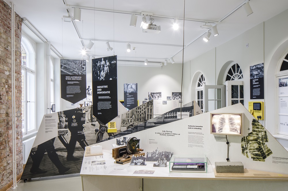 Unsere Dauerausstellung erzählt, wie Lichtenberg zu dem wurde, was es heute ist, und was es so besonders macht. Im Mittelpunkt stehen dabei die Themen Arbeiten – Leben – Verändern, zu erleben in vier Ausstellungsräumen: Im Raum WAS werden Ereignisse aus der Geschichte und Gegenwart des Bezirks erzählt. WO präsentiert die Vielfalt an Ortsteilen. WER dreht sich um Personen und ist offen für neue Ideen. WOW zeigt Überraschendes aus Lichtenberg.