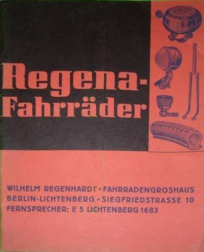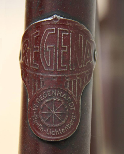 Dieser Drahtesel wurde im „Wilhelm Regenhardt Fahrradgroshaus Berlin-Lichtenberg“ in den 1930er Jahren produziert, das sich in der Siegfriedstraße 10 befand. Wilhelm Regenhardt handelte mit Fahrradteilen und baute auch Fahrräder auf, die er unter eigenem Namen verkaufte. Im Adressbuch von 1941 wird eine weitere Filiale in der Frankfurter Allee 345 angegeben. Es ist nicht bekannt, ob das Geschäft nach dem Zweiten Weltkrieg weiter bestand.