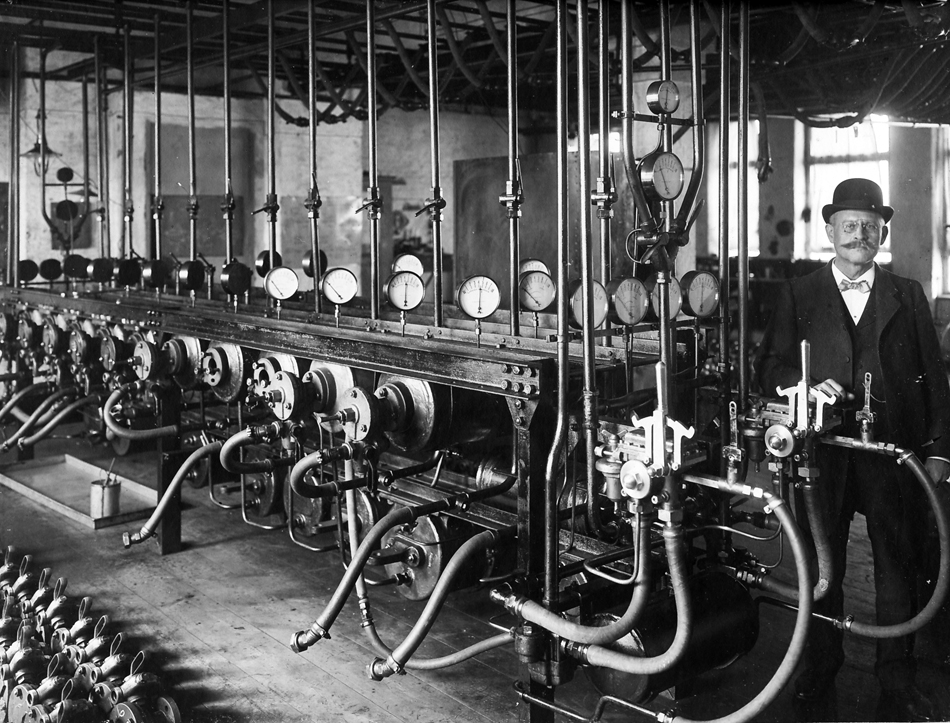 Foto: Georg Knorr am Prüfstand, 1908, © Knorr-Bremse AG