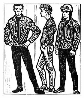 Abgebildet sind Jugendliche, deren Auftreten sich den Moralvorstellungen der Eltern- und Großelterngeneration der Ulbricht-, aber auch Adenauerära widersetzte. Offiziell wurde die „Unkultur der Halbstarken“ ebenso abgelehnt, wie zuvor in den Zwanzigerjahren die freien Lebensmodelle der Weimarer Zeit. Eine Sensation war die Frontaldarstellung eines männlichen Aktes – zu verstehen als ein künstlerisches Eingeständnis der eigenen Homosexualität des Grafikers.