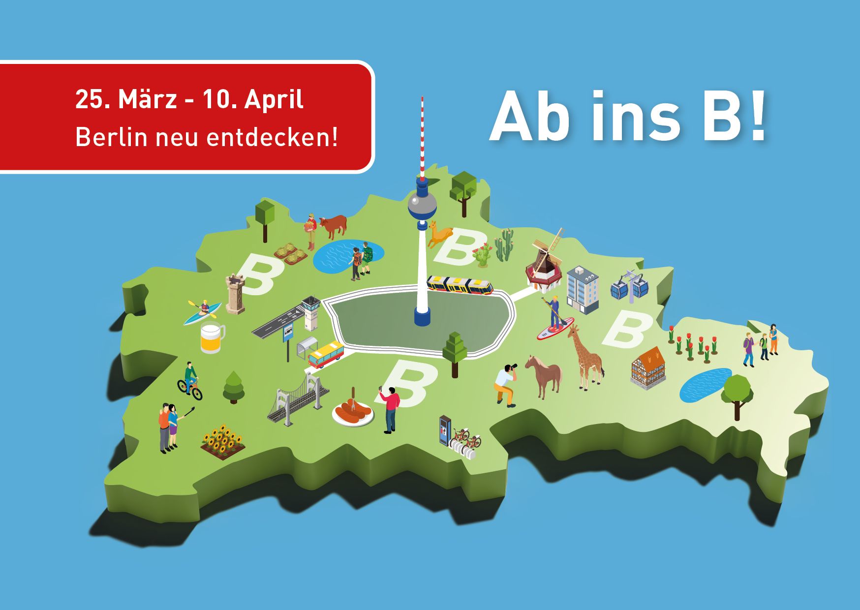 Mit der Aktion „Ab ins B“ sind Berliner:innen und Besucher:innen eingeladen, vom 18. bis zum 27. April über 200 Veranstaltungen in neun Berliner Bezirken zu erkunden. Seien Sie dabei und stöbern Sie hier durch das wunderbare Ab ins B!-Programm. Lichtenberg ist mit dabei!
