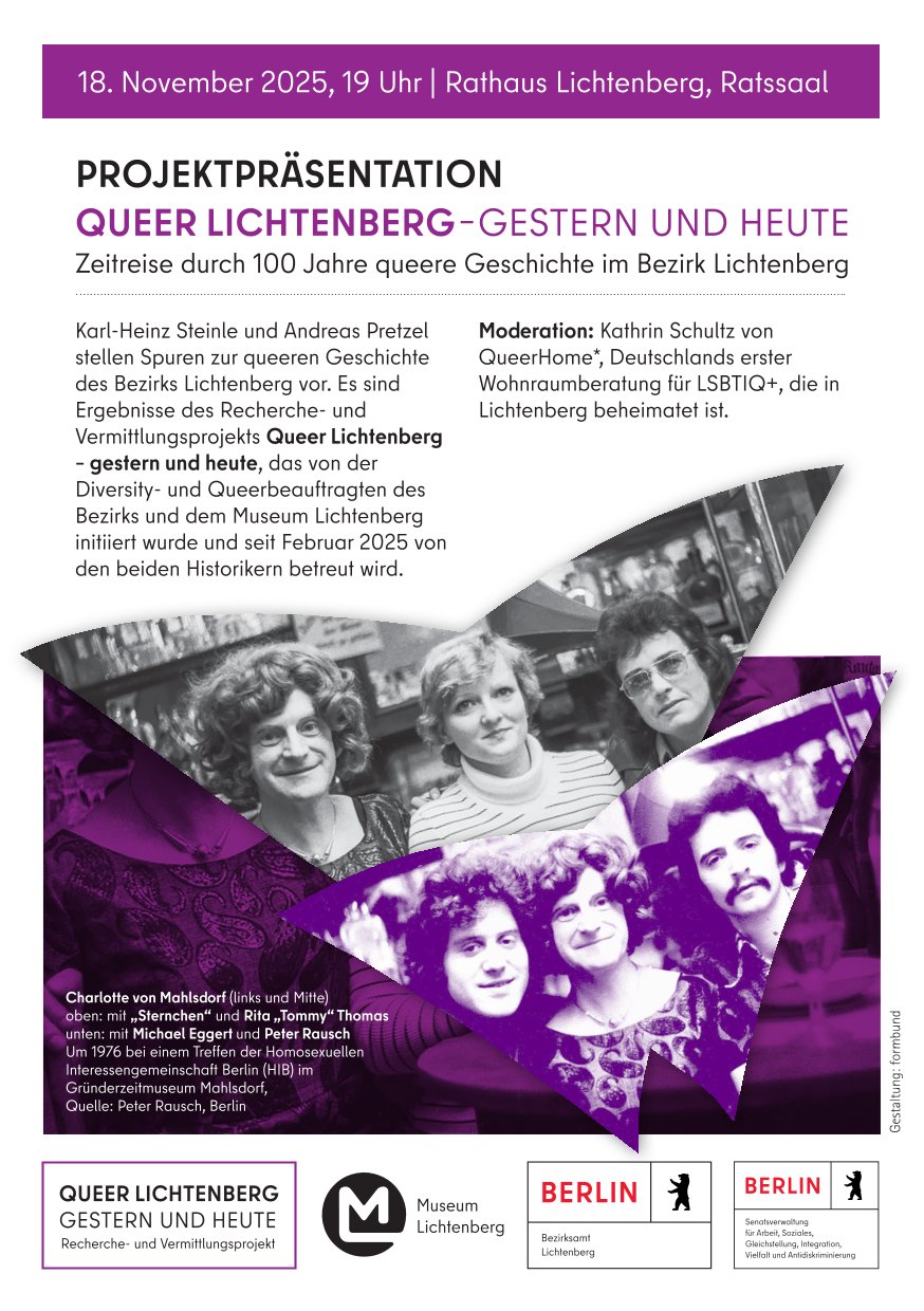 Dienstag, 18. November, 19Uhr | Projektpräsentation Queer Lichtenberg im Rathaus Lichtenberg
