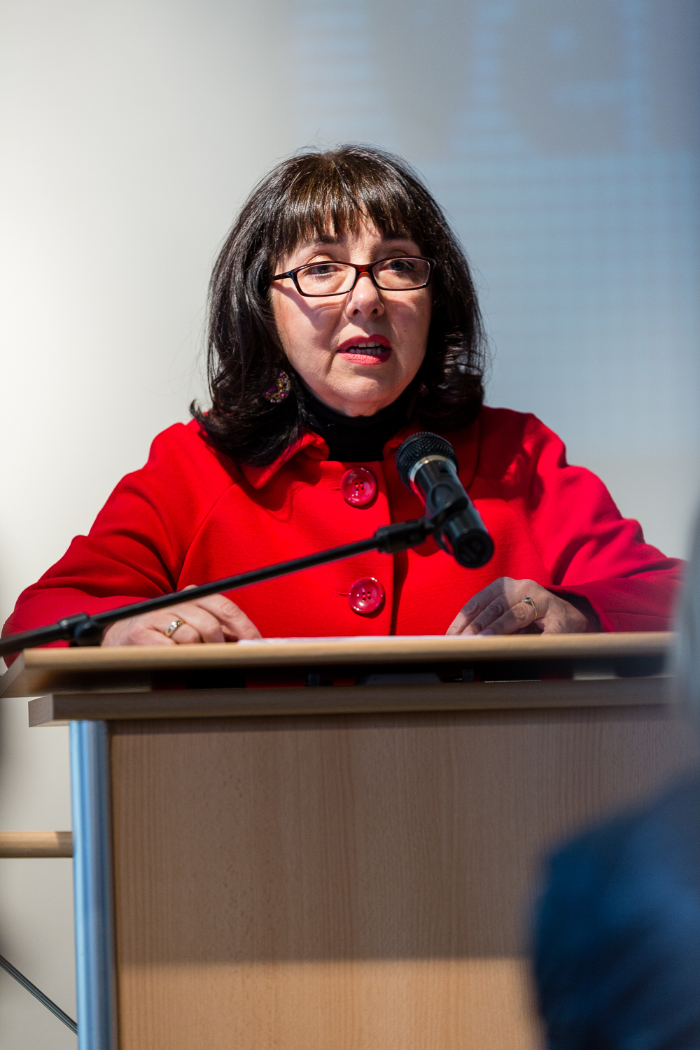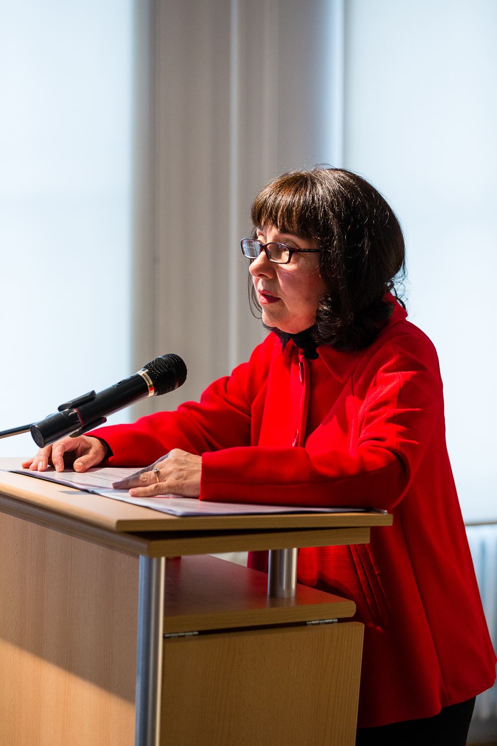 Petra Rosenberg (Vorsitzende des Landesverbandes Deutscher Sinti und Roma Berlin-Brandenburge.V.) während ihres Grußwortes
