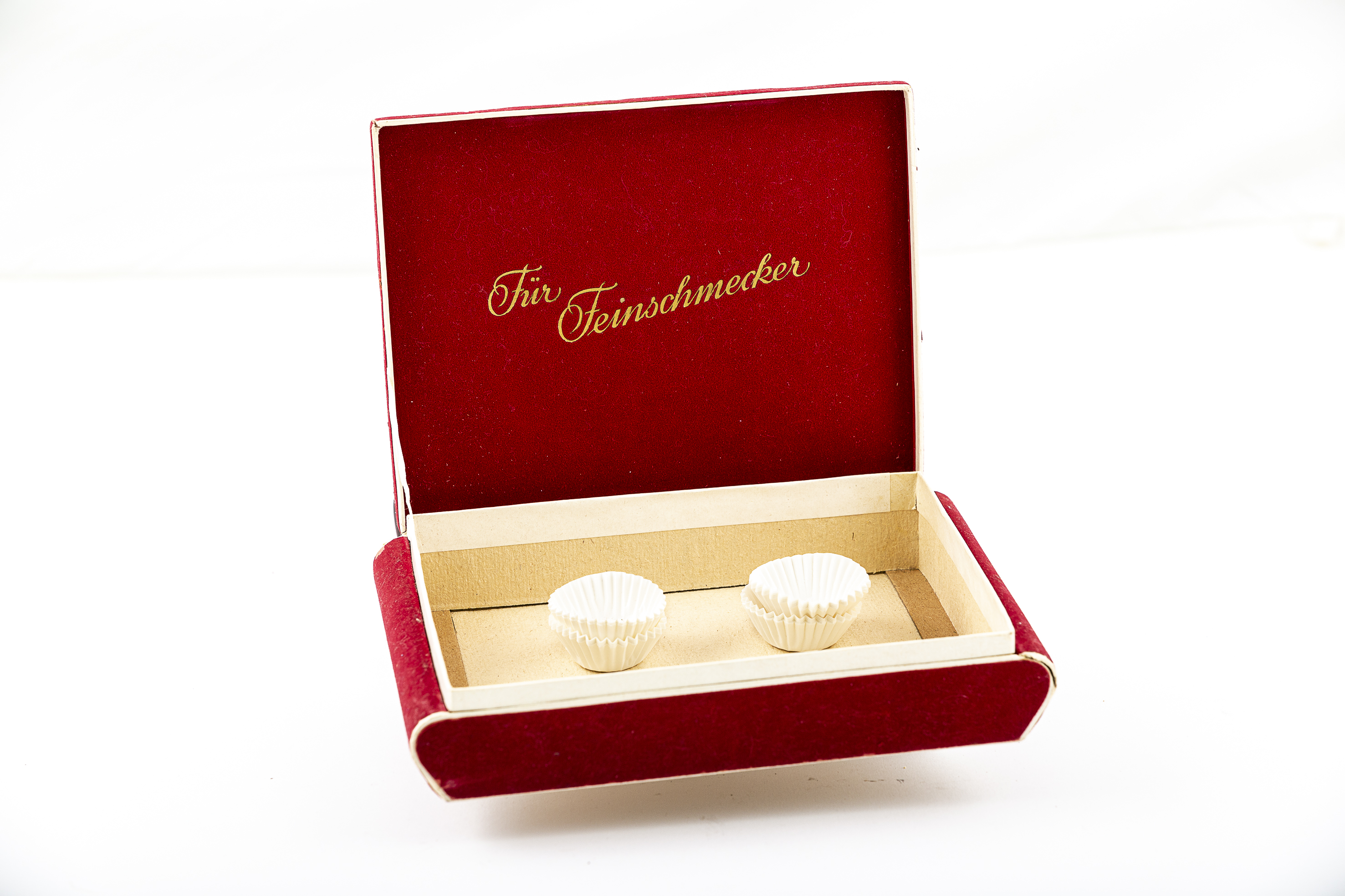 Das aus rotem Velour mit Goldschrift auf fester Pappe aufwändig gestaltete Pralinenkästchen verließ am 21. Januar 1960 die Fabrik „VEB Pralina in der Hohenschönhausener Berliner Straße 83/84. Obwohl die Qualität der Süßwaren sicher nicht den Ansprüchen unserer Zeit erfüllte, wie der Vermerk: „Schokoladenüberzug 30%“ auf dem Produktzettel nahelegt, waren sie alles andere als kostengünstig. Ganze 10,20 Mark musste für das süße Vergnügen ausgegeben werden. 300 Gramm fasste diese Schachtel. Das war für 1960 ein außergewöhnlich hoher Preis. 1908 wurde das Fabrikgebäude der Schokoladenfabrik errichtet und in den Folgejahren mehrfach durch An- und Umbauten ergänzt. In den 1920er Jahren nannte sich die Firma aufgrund amerikanischen Kapitals im Geschäft: „Deutsch-Amerikanische Zuckerwarenfabrik GmbH.“ Nach 1945 wurde sie enteignet. Mitte der 1960er Jahre wurde der Standort geschlossen. In einigen Gebäuden stellte man bis 1992 Eisenbahnsignalanlagen her. Inzwischen wurden im Hauptgebäude Wohnungen errichtet.