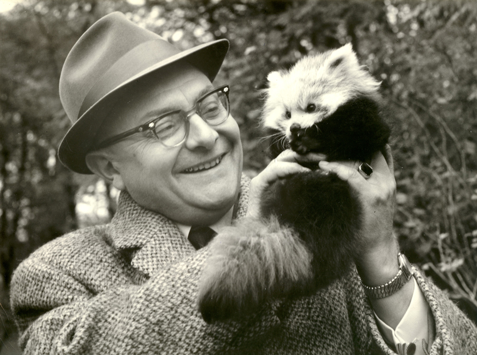 Foto: Prof. Dr. Dr. Dathe mit KatzenbÀr, Archiv Tierpark Berlin