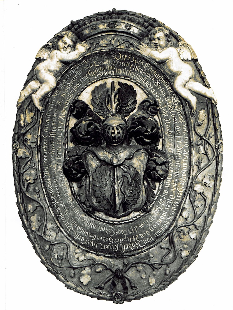 „Der Hochedelgeborene Gestrenge, veste und Mannhafte Herr Hans Christian von Röbell seiner Churfürstl. Durchlaucht weilandt wohl verordter Commissaris des Niederbarnimschen Kreises Erbherr auf: Hohenschönhausen, Wartenberg und Buchholz ist geboren; Ao. 1603 den frytag nach Exaudi durch einen sanften, Seeligen todt aus der Welt gerufen den Ostermontag den 24ten April in diesem laufenden 1671 Jahr. Nachdem er es gebracht auf 67 Jahr 10 Monate 15 Tage. Gott wolle ihm geben hie in der Erden eine gute Ruhe am Jüngstentage eine Fröhliche Auferstehung.“