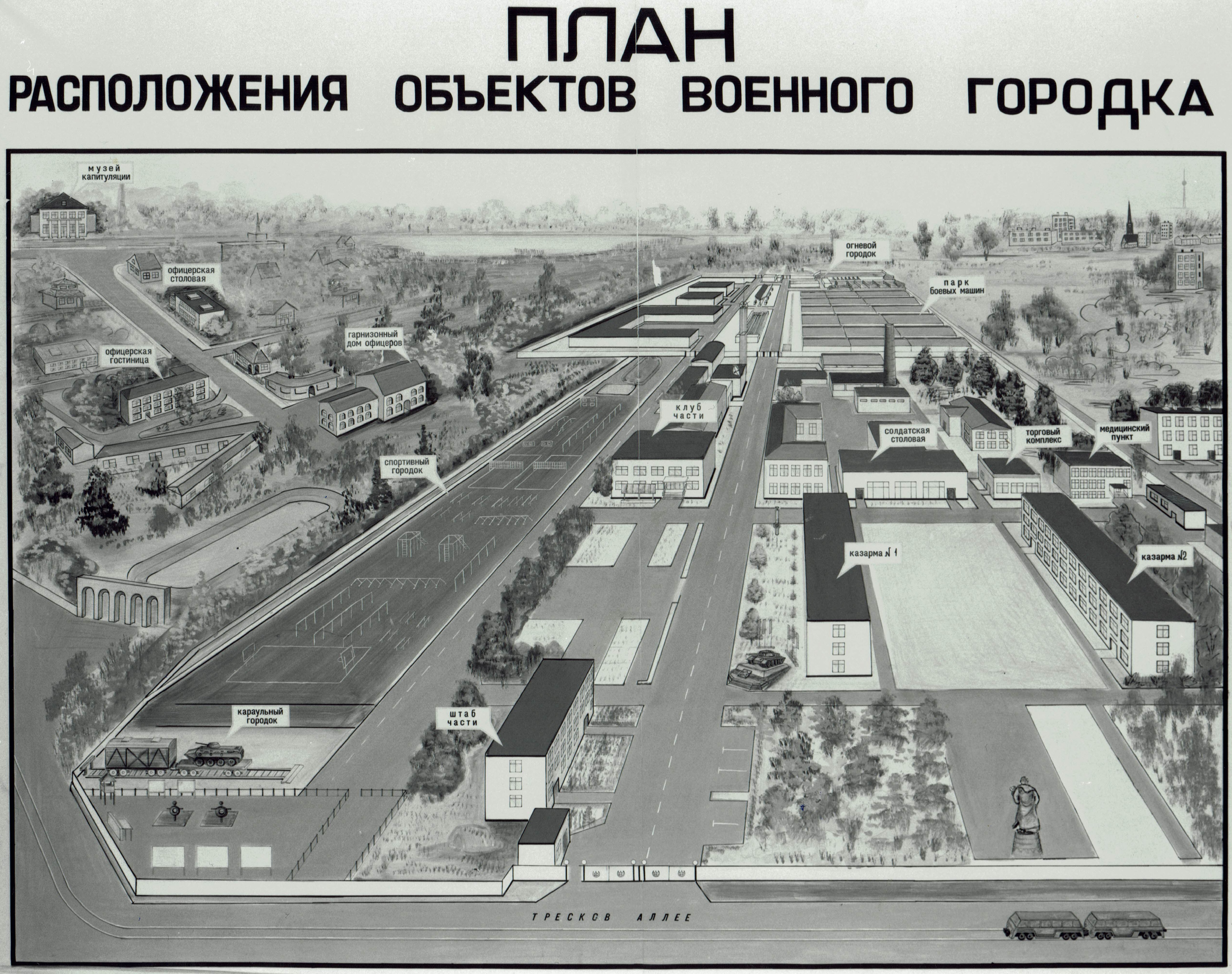 Einst Ausbildungsstätte der NS-Regierung für Pioniereinheiten der Wehrmacht, richtete die sowjetische Armee am 23. April 1945 dort das Hauptquartier des Stadtkommandanten ein. Von hier aus koordinierte Nikolai Bersarin die Einnahme und Befreiung Berlins. Ab Mai 1945 wurde das Areal zum Sperrgebiet und ca. 8.000 Karlshorster mussten ihre Häuser räumen. Bis zum Abzug der sowjetischen Streitkräfte 1994 befand sich hier die größte KGB-Zentrale außerhalb der UdSSR.